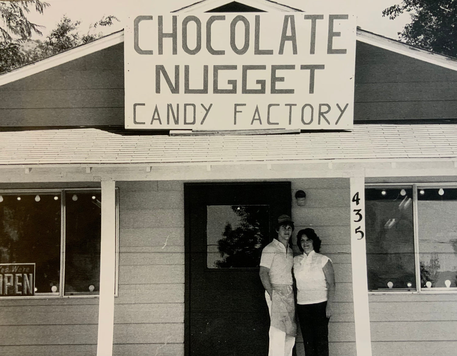 My mom and I at our first Chocolate Nugget Candy Factory in 1983